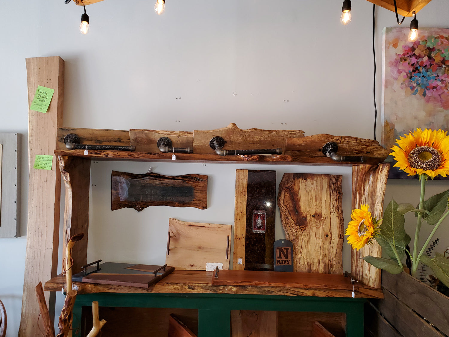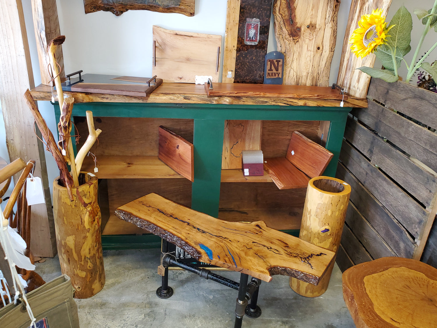 MR Productions specialized in unique finished pieces such as risn and wood serving boards, river tables, accent tables, benches and wall decor. You never know what you might find.